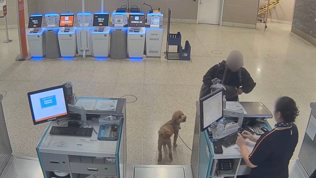 Curiously, the available footage of the exchange that happened at the ticketing counter is missing -or has muted- audio. It is unclear what exactly was said or what prompted the dog owner to leave without her dog, but the dog and owner remained within the airport during the incident. The dog owner has stated that she was denied access to a boarding pass because airline employees at the ticketing counter informed her that she had not filled out the necessary online paperwork to fly with her poodle mix in-cabin as a service dog.